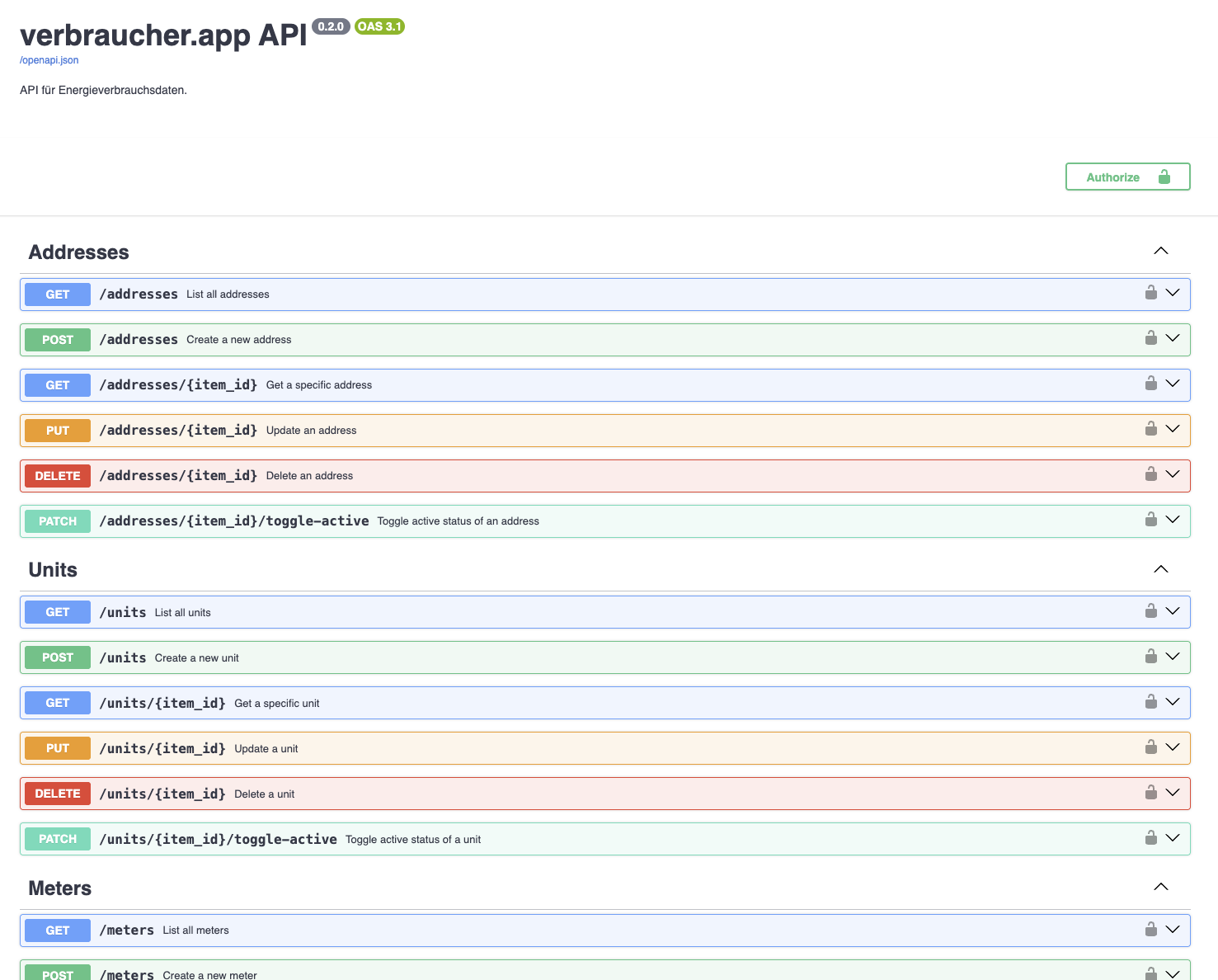 Unter api.verbraucher.app findet ihr unsere flexible API-Schnittstelle. Damit könnt ihr im Grunde alle Daten, die ihr auch manuell über die Weboberfläche eingeben könnt, programmatisch an verbraucher.app senden. Integriert die Verbrauchserfassung direkt in eure externen Systeme, wie zum Beispiel Home Assistant, und automatisiert so die Übertragung eurer Zählerstände. Werft einen Blick in die Dokumentation und gestaltet eure Energieverwaltung noch nahtloser und intelligenter!