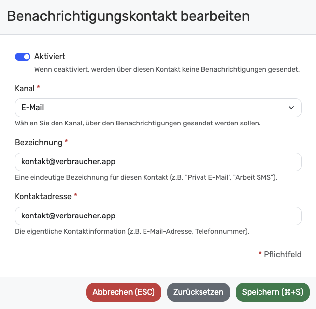 Mit unserer zentralen Empfänger-Verwaltung ist es kinderleicht, festzulegen, wer Ihre wichtigen Erinnerungen zum Zählerablesen erhalten soll. Anstatt E-Mail-Adressen immer wieder neu eingeben zu müssen, legen Sie Ihre Kontakte einmal an und weisen sie dann bequem Ihren Erinnerungsregeln zu. Egal ob es Ihr Partner, Ihr Mieter oder Sie selbst an eine zweite E-Mail-Adresse sind – Sie haben die volle Kontrolle.